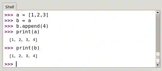 正如你所看到的, 我们追加到列表 b, 但列表 a 也得到了更新。你可能知道为什么会发生这种情况, 但是对初学者来说,什么才是最好的解释呢?