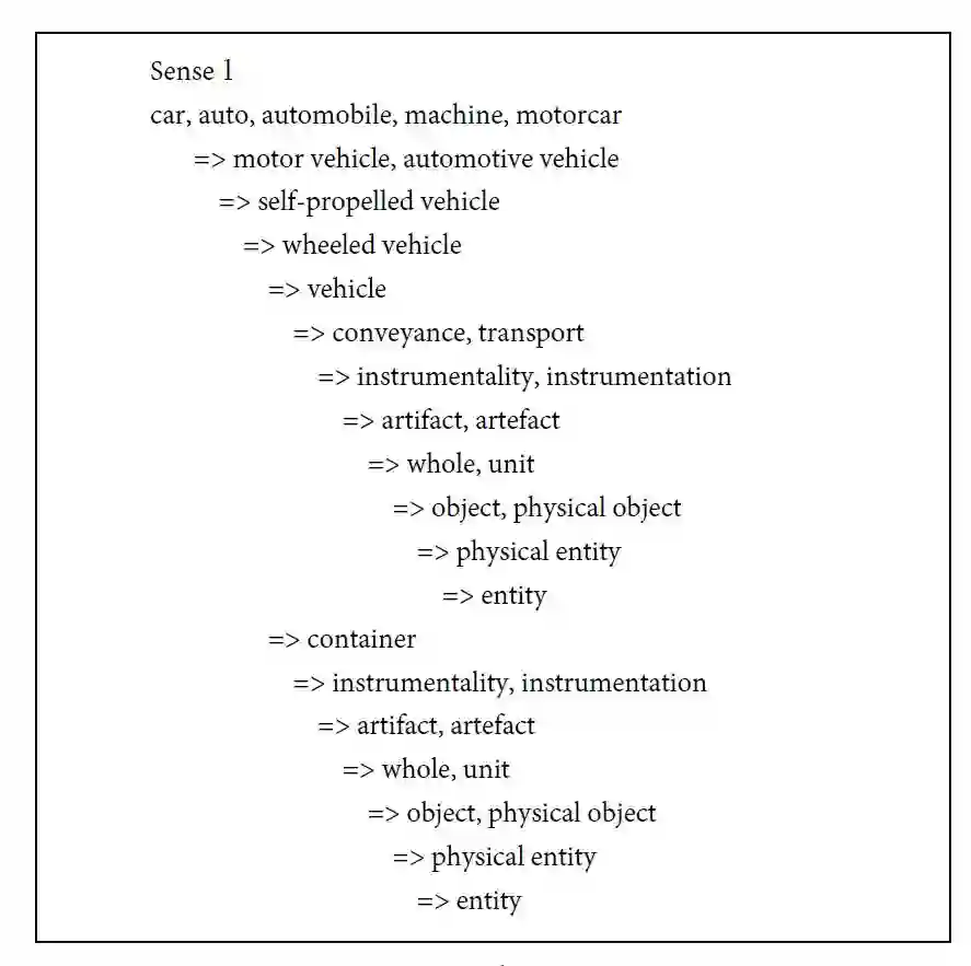 知识表示的另一个来源是心理学和语言学,例如概念的上下位继承关系最方便的表示方式是树而不是一阶逻辑。心理学实验表明人在回答“金丝雀会飞吗?”要比回答“鸟会飞吗?”花的时间长,要回答第一个问题,人要再做一次“金丝雀是鸟”的推理。因为人在存储知识时只存储抽象的,这是空间经济的考虑。心理学家米勒和乔姆斯基等一起开拓了认知科学,他最出名的论文大概就是那篇“魔力数字七”(The Magic Number Seven)。他除了理论的贡献,晚年带领普林斯顿大学的认知科学实验室同仁做了“词网”(WordNet)。WordNet 不单是一个同义词辞典,还定义了词的上下位关系,例如,car 的一种上位是 motor,可以再上位到 wheeled vehicle,直到 entity。WordNet 成为自然语言处理的基本工具。