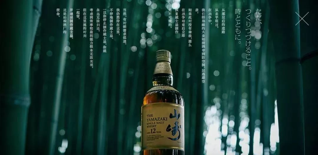 山崎是威士忌中的贵族,针对的是有品位有实力的大叔,主打场景是成年人的独处时刻——「在山崎,奖励自己」,「属于我自己的时间」。有阴翳礼赞的风韵,日式幽暗背景来突出酒体的暖色。
