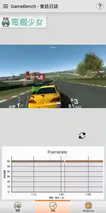 Real Racing 3 的测试方法跟之前一样,另外下载了「PR3 Graphic Settings」这款效能辅助 App 并调到 Extra High。结果虽然是稳定 60 帧,但在测屏幕刷新率有 120Hz 的 Razer Phone 时,帧数是有 80-100 左右的,因此判定黑鲨的屏幕更新率应该不是那么高。但我看赛车画面还是很顺的没有问题