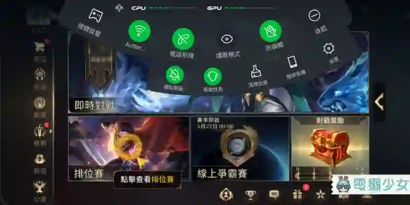 如果你打开 Shark 键,就是进入玩游戏的高效模式,一键清理内存跟打开游戏 Dock 中的设定。所以我后来几乎没碰游戏 Dock 了,因为设定几乎不太需要改,开 Shark 键更轻松