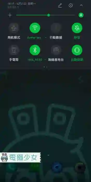 黑鲨的界面看起来蛮舒服的,一贯的黑绿配色,内附可以清理缓存的 App,里面无法卸载的 App 不多。但 Linda 试着把开发者选项打开,想使用 Android 系统原本就有提供的帧数显示功能,但却没有找到,看来黑鲨的系统离 Android 原生系统还是有段距离