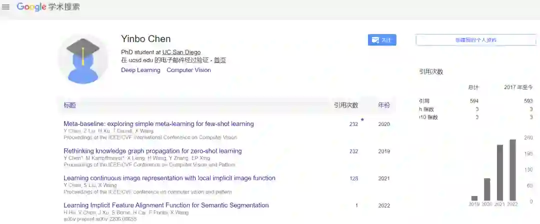 陈胤伯是加州大学圣地亚哥分校电子与计算机工程专业二年级的博士生,导师是 Xiaolong Wang 教授。陈胤伯的主要研究兴趣是元学习器,他本科毕业于清华大学姚班。