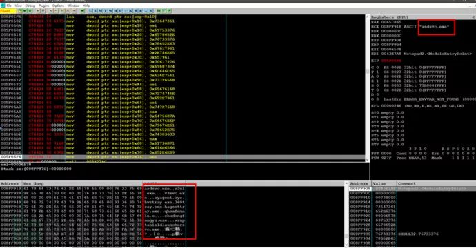 接下来,漏洞触发执行的shellcode会通过进程名,判断用户是否安装了AhnLab、ViRobot APT Shield和360三款中韩常用的安全软件,以采取不同的方案进行攻击。