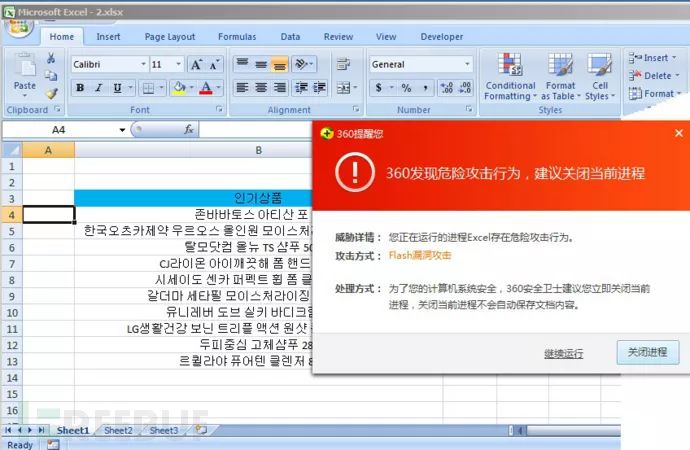 攻击者对相关人员精心策划了社会工程学攻击,通过即时聊天工具和邮箱向相关人员发送包含漏洞及恶意代码的excel诱饵文档,诱骗受害者打开中招。