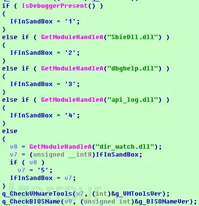尝试加载下列DLL,尝试获取VMwareTools版本号和BIOS版本信息,进而判断是不是处于沙箱环境或者调试中
