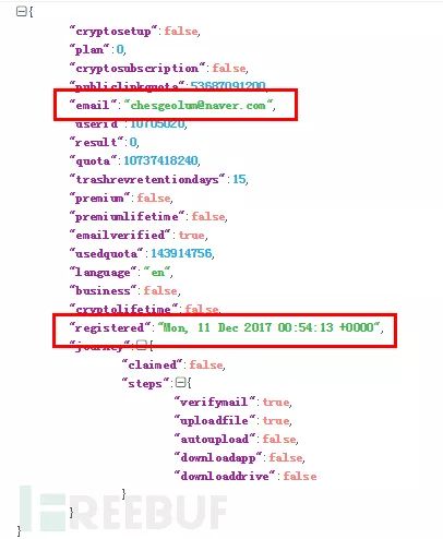 通过对程序的逆向分析,我们发现了网盘的Token权限并没有被严格限制,通过该Token可以获得网盘的注册信息和保存在网盘中的内容,从中我们定位到了攻击者的网盘注册邮箱为cheseolum@naver.com,注册时间为2017年12月11日,与韩国响应中心公告的11月开始攻击的时间相近。