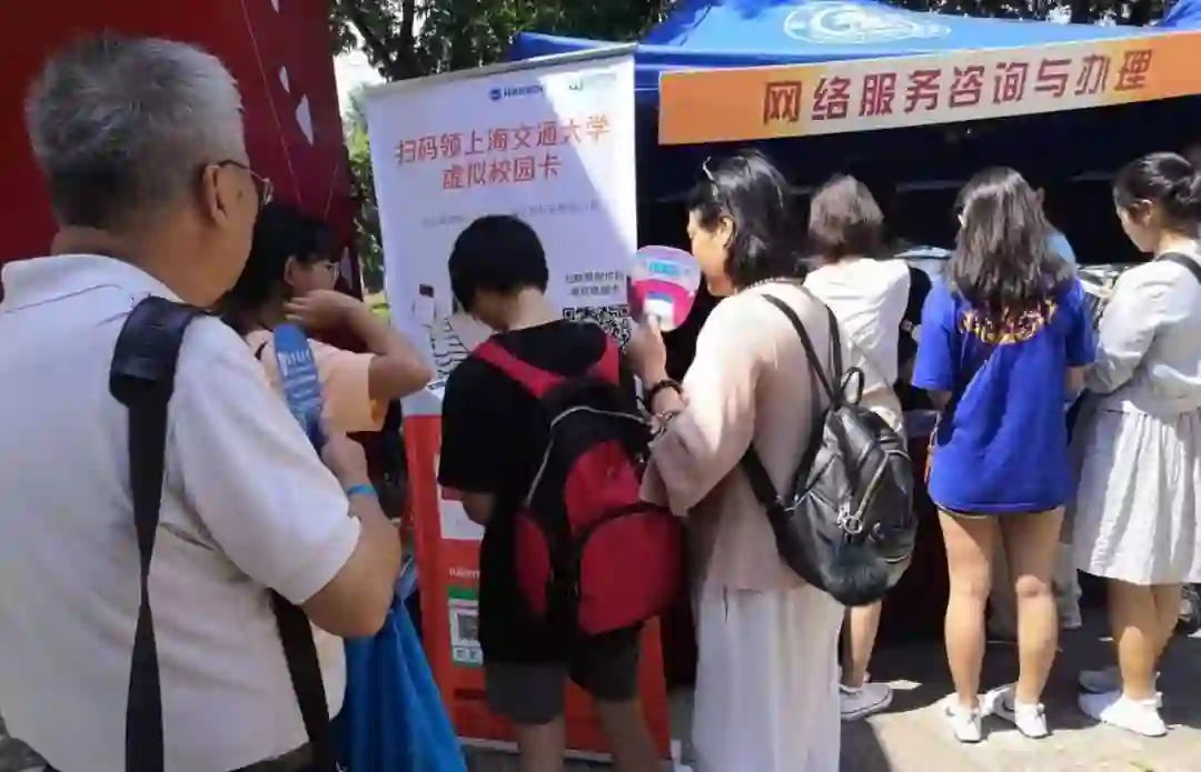 这是东川路男子职业技术学院(上海交大)的新生在了解腾讯微校虚拟校园卡。