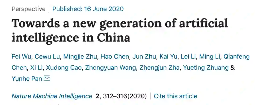 今年 6 月,由 AI 青年科学家联盟 · 梧桐汇牵头,联盟学术委员会主席、中国工程院院士潘云鹤作为通讯作者,15 名来自中国学界和 AI 产业界的领军人物联手,在 Nature Machine Intelligence 上发表了论文《Towards a new generation of artificial intelligence in China》。