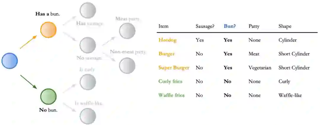 使用低维表格数据时,决策树中的决策规则很容易解释,例如,如果盘子中有面包,然后分配给合适的孩子(如下所示)。然而,决策规则对于像高维图像的输入而言则不是那么直接。模型的决策规则不仅基于对象类型,而且还基于上下文,形状和颜色等等。