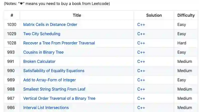 LeetCode 问题的解决方案,主要是 C++,还标明了解决问题的难度: