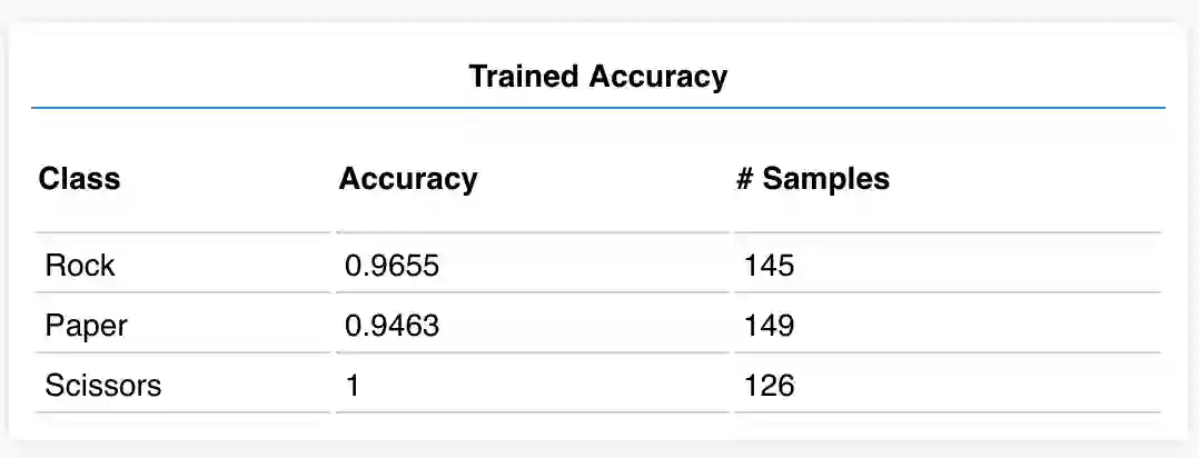 正如在这里看到的,布被意外地归类为剪刀 6 次。这是有道理的,有时候布看起来有点像剪刀。像上面这样的混淆矩阵可以帮助我们找出需要解决的问题。