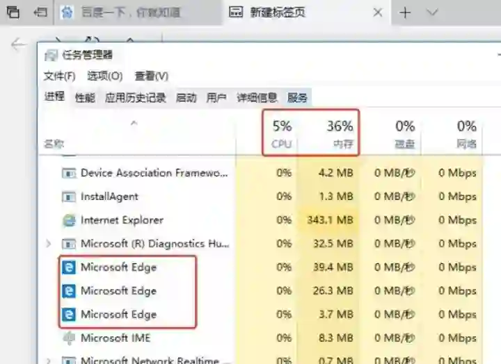 当然,浏览器有时会将多个进程合并(譬如打开多个空白标签页后,会发现多个空白标签页被合并成了一个进程),如图