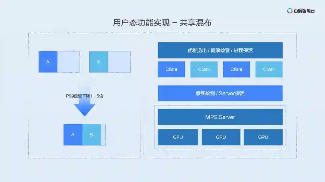 如何解决这个 MPS 稳定性问题的呢?百度智能云结合调度、容器引擎、业务保活提出一整套进程融合共享方案。