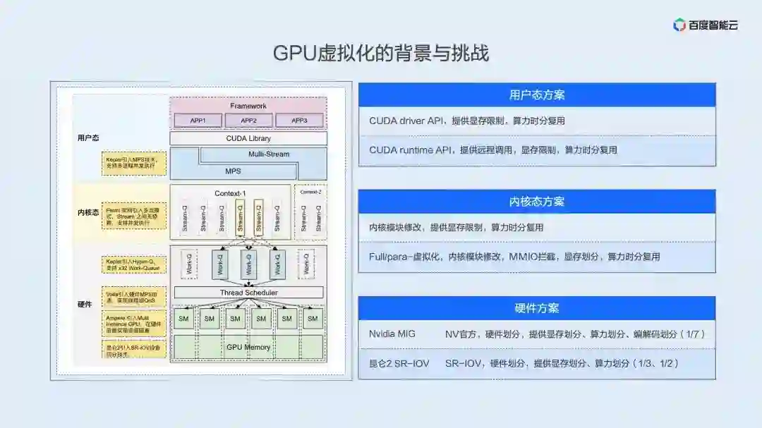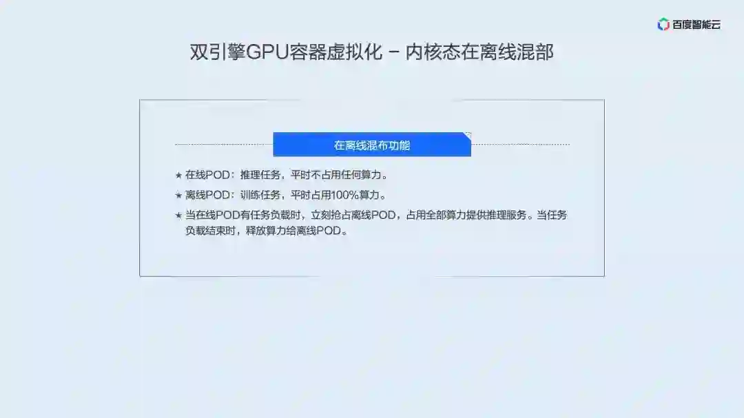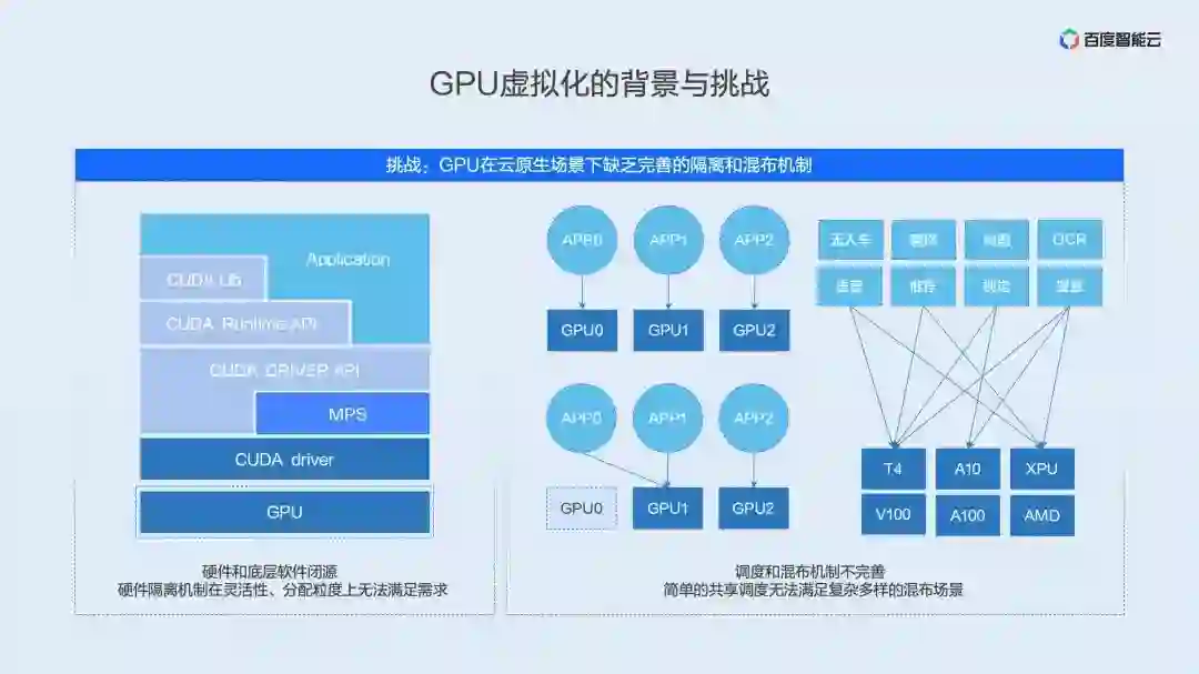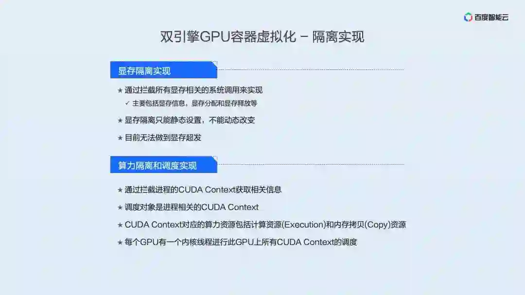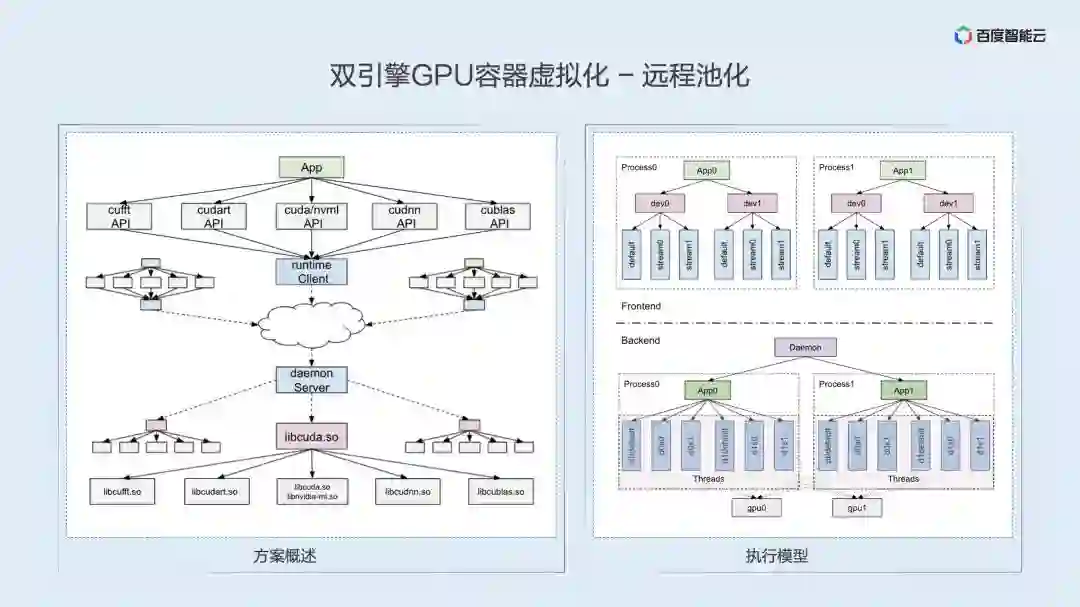 这张图展示了百度智能云 —— 双引擎 GPU 容器虚拟化架构。