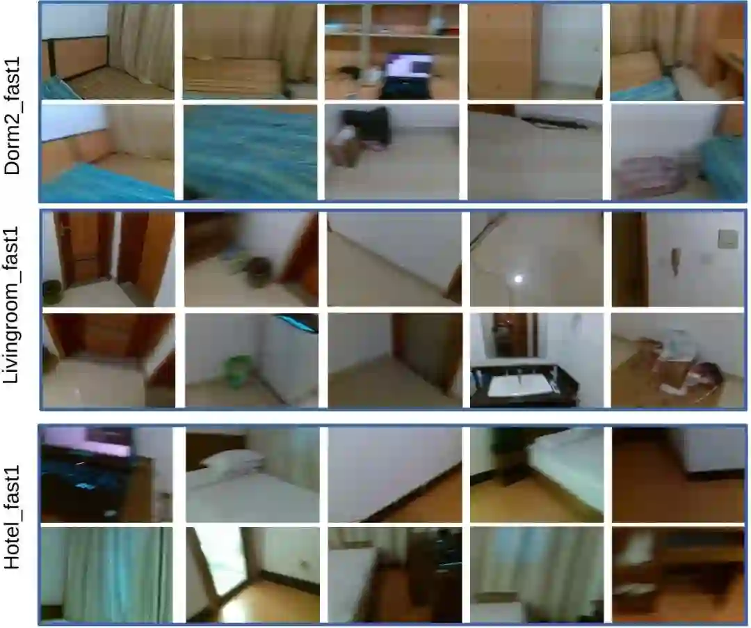 数据集共有从6个不同场景中采集的14个视频序列.所有序列依据相机运动速度及彩色图像的模糊程度被区分为慢速,中速和快速。以下是数据集中部分场景的图片:
