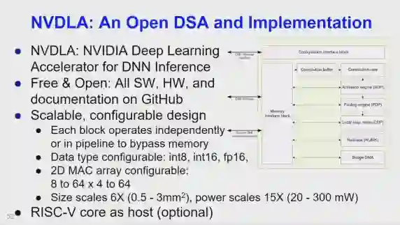 而在深度学习加速器领域,英伟达开放了其神经网络加速架构NVDLA,其配套工具及说明均可在GitHub上获得,具有可拓展及灵活性等优点,而该加速架构所使用的主处理器则可采用RISC-V核。由于FPGAs的可塑性、RISC-V以及其软件的开放,开发者可在线快速开发与验证。