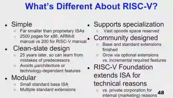 架构免费开源将使任何人都可以低门槛接触并参与开发,并可自由扩展以支持专用架构,更多的人或团队参与开源的处理器设计,将加速领域创新,形成更有竞争力的市场。