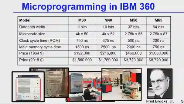 之前,英国科学家Maurice Wilkes(1967年图灵奖获得者,第一台实际运行的存储程序计算机EDSAC的提出者)提出微程序的概念和设计控制单元,解决了计算的控制难题。从1964年起IBM延续该设计思路,随后其设计的微控制单元在多方面性能均有提升,直到现在,微控制理念在主流处理器中仍一直沿用,公司在Fred Brooks(1999年图灵奖获得者)等人的努力下也因此获得了更好的发展,领导了计算机行业多年。