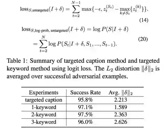 作者通过一个求解优化问题来生成对抗样本,并设计了新颖的损失函数来实现高效的搜索。该方法成功地在 Show-and-Tell 模型和 MSCOCO 数据集上生成了人眼无法识别的对抗样本,并且这些对抗样本还能够迁移到带有 Show-Attend-and-Tell 模型上。