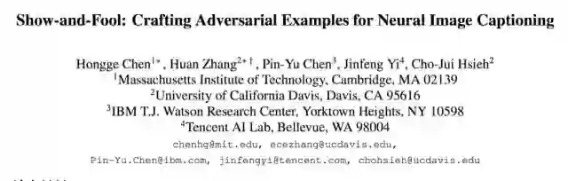 近日,针对深度学习系统的对抗性样本攻击问题,来自麻省理工学院,加州大学戴维斯分校,IBM Research 和腾讯 AI Lab 的学者在 arXiv 上发表论文提出对于神经网络图像标注系统(neural image captioning system)的对抗样本生成方法。实验结果显示图像标注系统能够很容易地被欺骗。