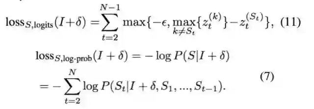 给定一个目标标注句子 S,文中提出了基于未归一化的概率(logits)的损失函数和基于对数概率(log probability)的损失函数形式。