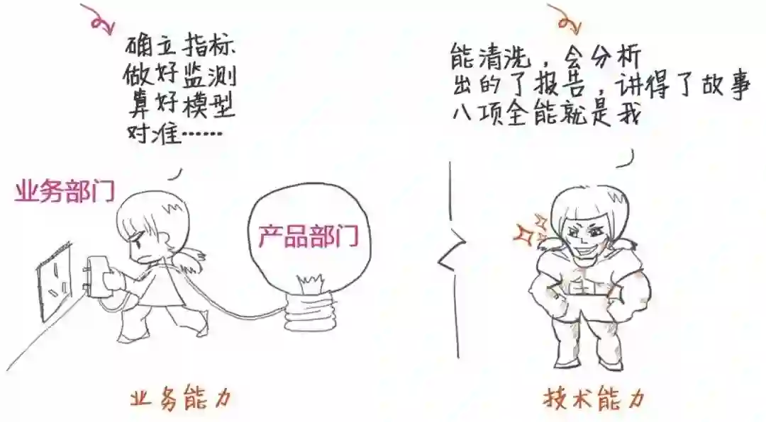 第二是业务能力,就是发现问题和解决问题的能力,参与到产品的设计到销售的整个流程,从数据中反馈出结论,从而连接业务和产品两个部门的工作;