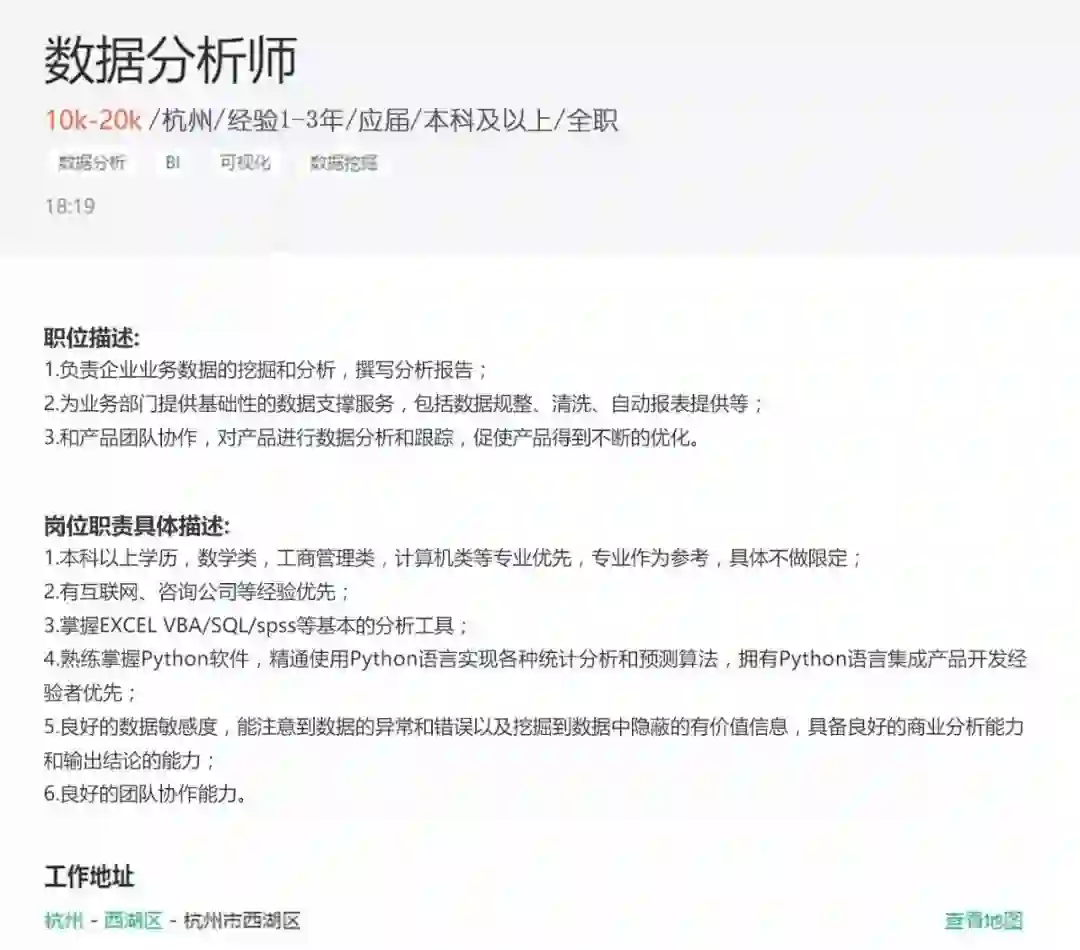 学妹:鹏哥,我最近自学数据分析,excel、R、Python、SQL什么的都有涉及。想着投简历试试,可我一打开招聘网站就懵了,简直超纲,连招聘信息都看不懂我还怎么去应聘啊?