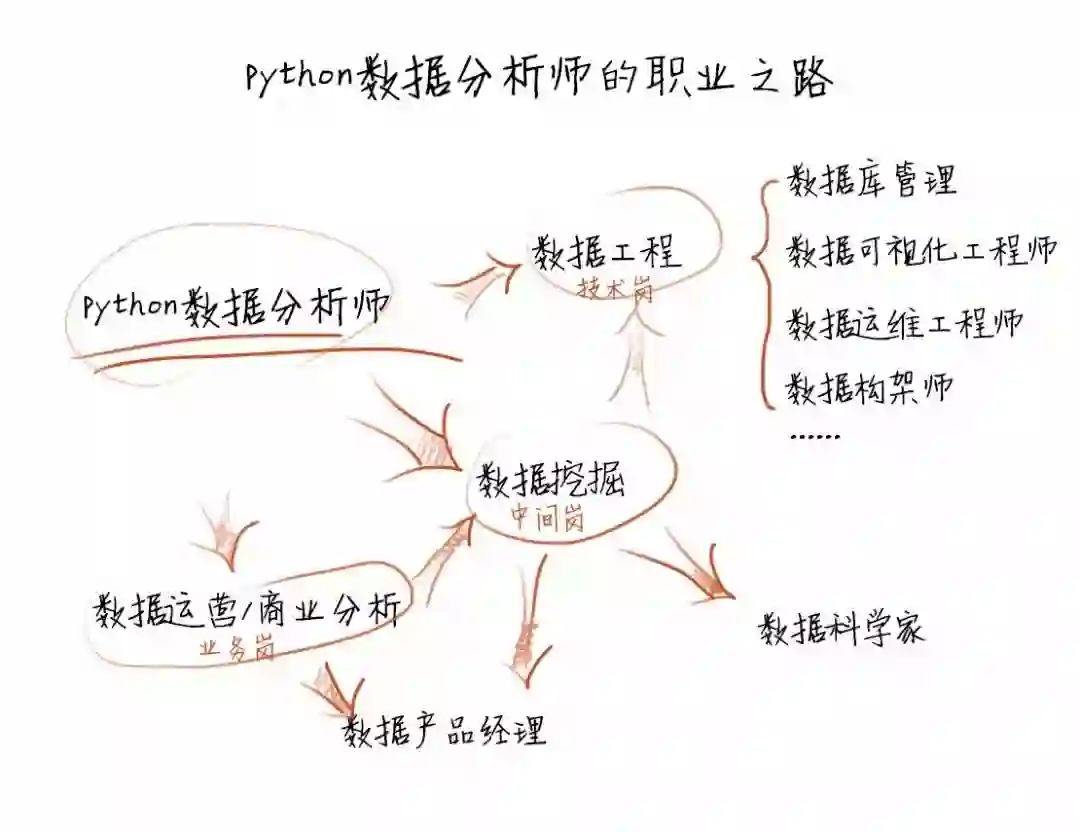 Python数据分析工作后期转岗加薪的可操作性也比较好,按照个人意愿和技术可以往不同方向发展,薪资嘛当然也是越精越高的。
