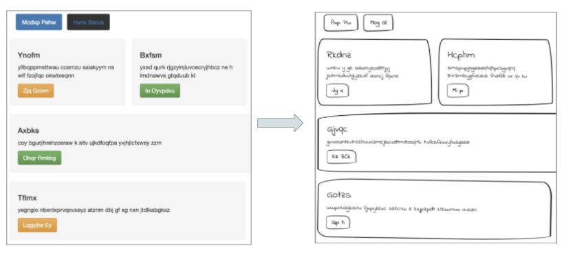 我正在解决的问题属于程序综合(https://en.wikipedia.org/wiki/Program_synthesis)这个广义任务范畴,即工作源代码的自动生成。尽管很多程序综合能处理从自然语言要求或执行轨迹所生成的代码,但在我这个案例中,我可以从一个源图像(手绘线框图)开始,自动获得想要的代码。