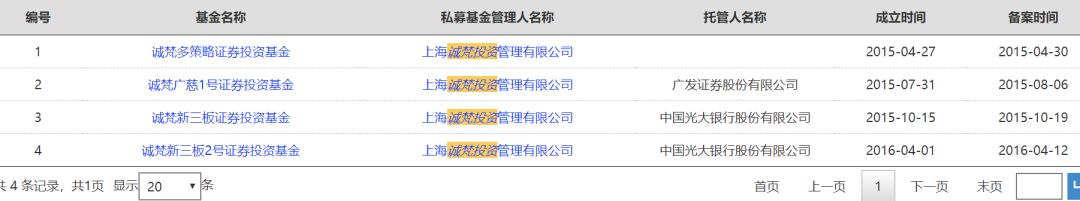 根据中国证券投资基金业协会(以下简称“基金业协会”)显示,诚梵投资旗下管理着四支基金。