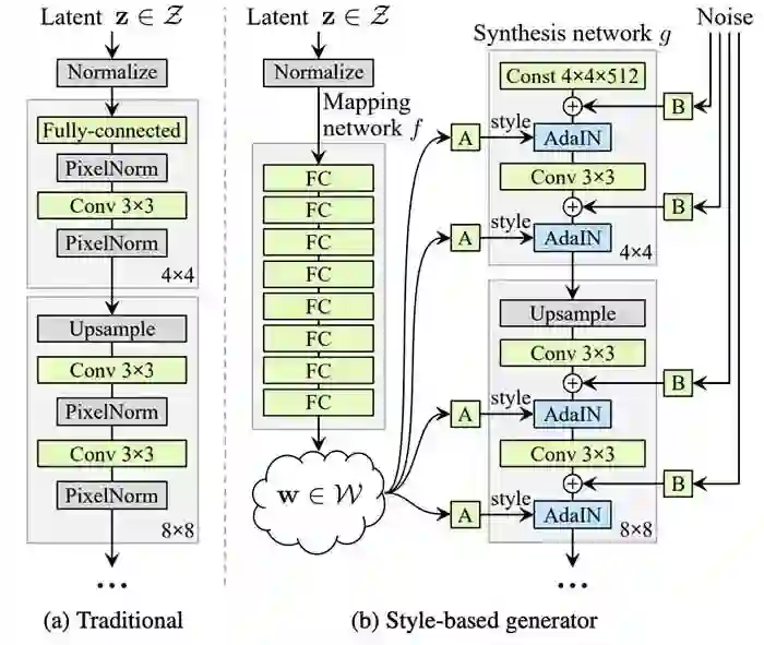 受风格转移文献的推动,NVIDIA团队引入了一种生成器架构,可以通过新颖的方式控制图像合成过程