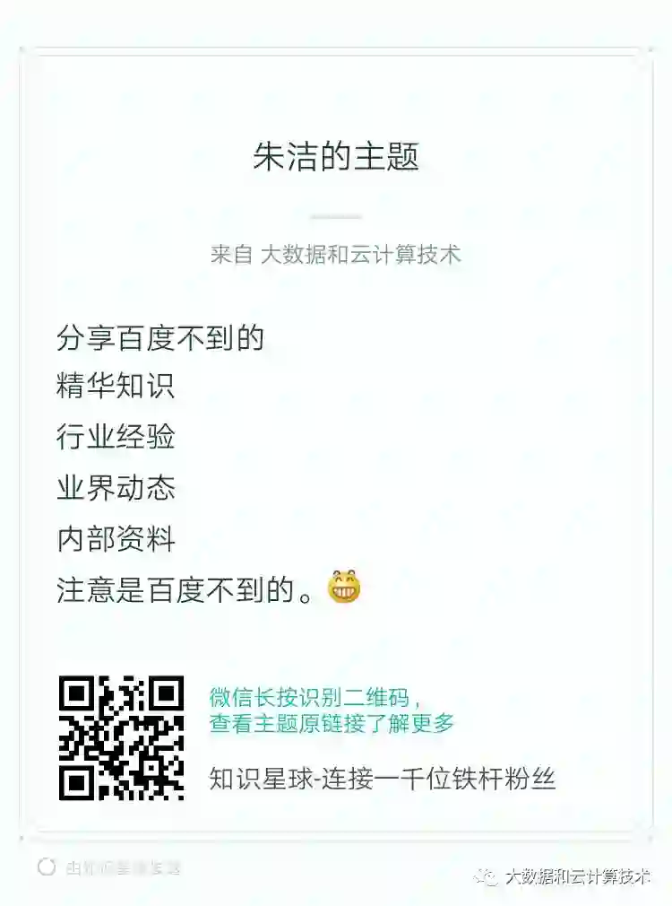 为了方便大家相互交流学习,创建了一个公众号同名微信群:《大数据和云计算技术交流群》,人数已经900+,欢迎大家加下面我的微信,我拉大家进群,自由交流。