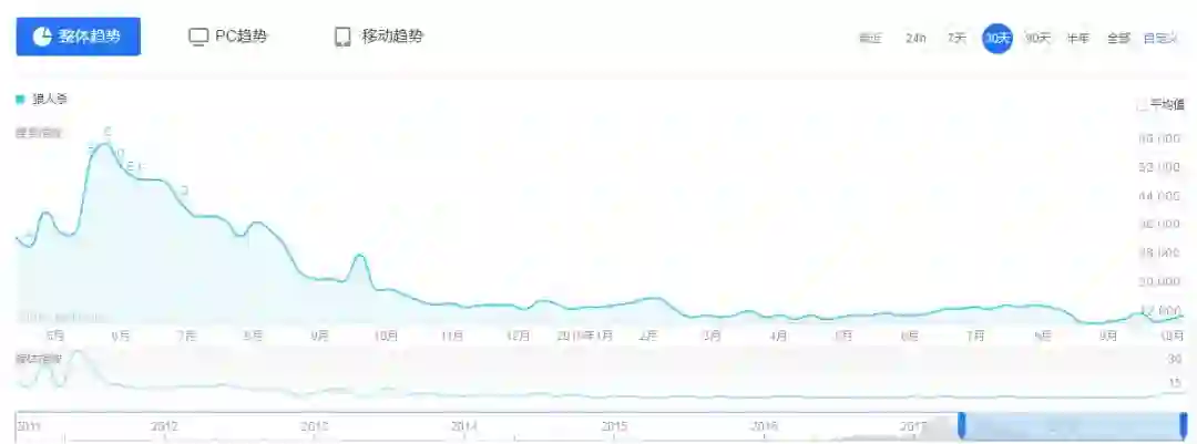 不过去年被市场推崇的狼人杀,现在已经褪去了当时的热度,“狼人杀”在百度指数中的搜索指数一直呈下降趋势。
