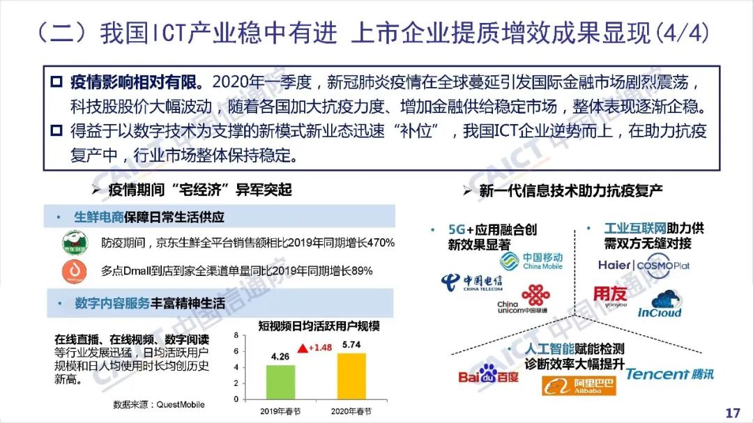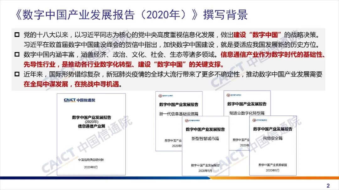 2020年5月21日,中国信息通信研究院(以下简称“中国信通院”)与数字中国产业发展联盟联合举办了“数字中国产业发展在线论坛”。论坛上,中国信通院发布了《2020数字中国产业发展报告(信息通信篇)》。