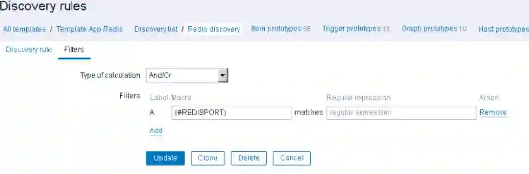 需要注意的是其中这里的Seninel master需要同时接收到{#REDISPORT}和{#SENTINELMASTER}两个宏信息。