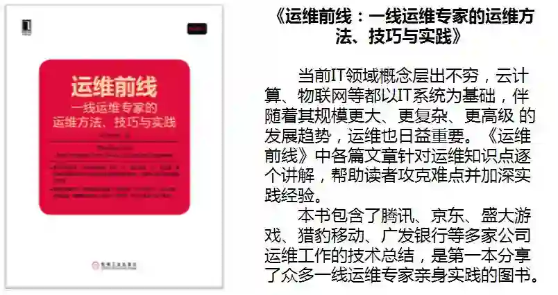 在本文微信订阅号(dbaplus)评论区留下你最喜欢用的运维工具及使用它的原因,小编将在本文发布后的隔天中午12点根据留言精彩程度选出1位幸运读者,送出以下好书一本~