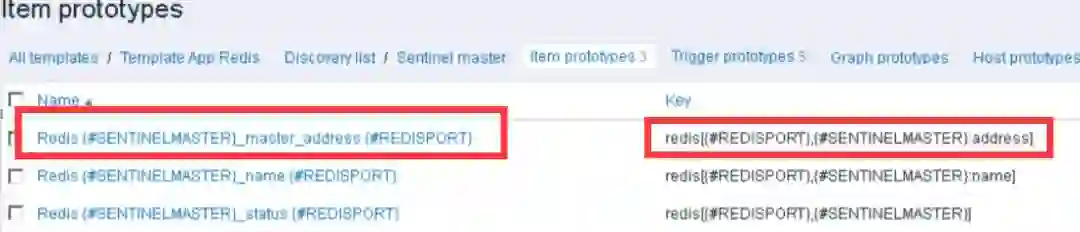 包括item也要设置{#REDISPORT}和{#SENTINELMASTER}两个宏信息: