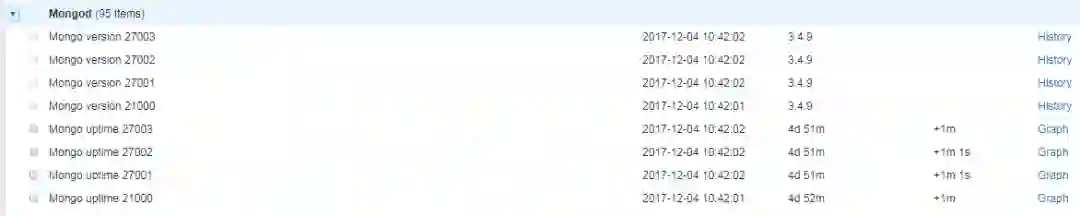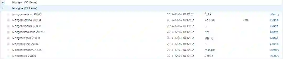 最终通过LLD发现的Mongod和Mongos监控Item示例如下: