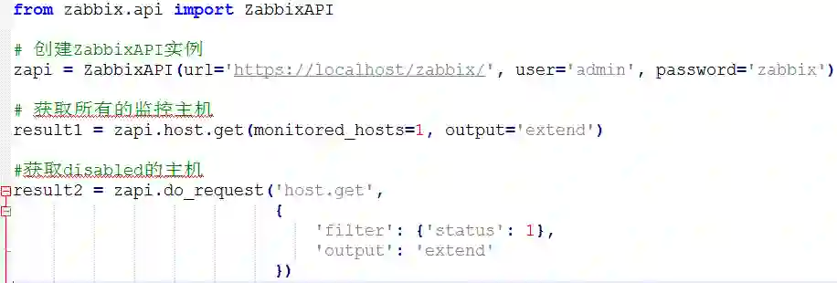 在Python项目上一般可以使用第三方的py-Zabbix或者自己封装(urllib、requests)来实现访问。