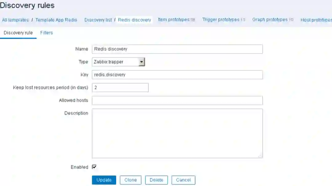 首先要用LLD发现Seninel的实例,这个和Standalone类似,上图中的Sentinel discover,就是第一次LLD。在前面的LLD章节已有说明,这里主要说明是如何发现Seninel中监控的Master实例信息,即上图中的Sentinel master。