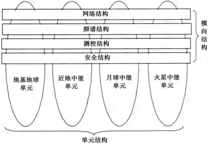 3.测控结构:综合利用无线电测控、数据跟踪与中继、全球卫星定位、脉冲星X射线导航等技术,为各种航天器、航天靶场提供无缝的测控通信服务,实现航天器高覆盖、低成本的统一管理。