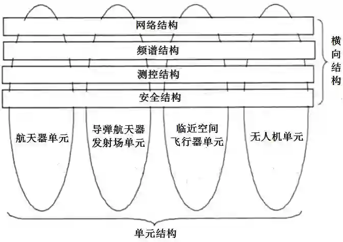 测控结构:综合利用无线电测控、卫星跟踪与中继、全球卫星定位、脉冲星X射线导航和相对导航等技术,为航天器、导弹航天器发射场、临近空间飞行器和无人机提供无缝的测控通信服务,实现飞行器高覆盖、低成本的统一管理。