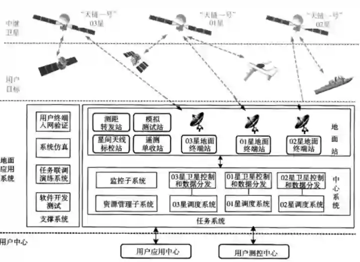 我国第一代中继卫星由用户中继终端、中继卫星和地面应用系统组成,如图 1所示。