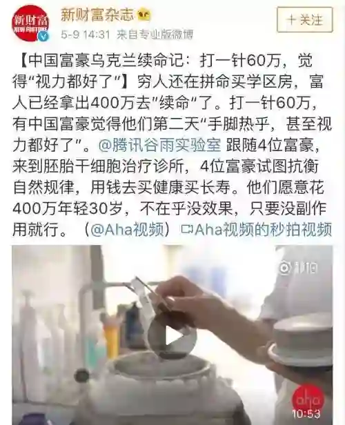 富豪们愿意花400万年轻30岁,心态很佛系: 不在乎没效果,只要没副作用就行。