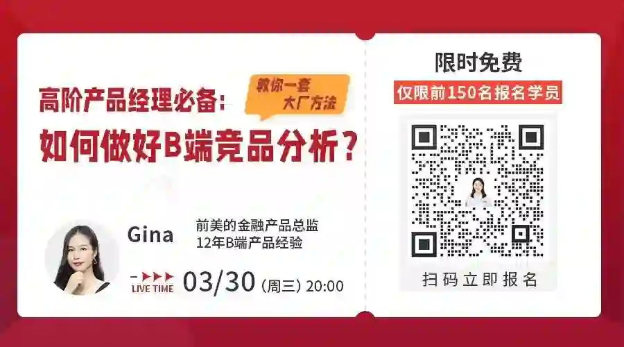 3月30日周三晚20点,前美的金融产品总监@Gina老师,结合12年的B端产品经验教你一套有效的B端竞品分析方法~