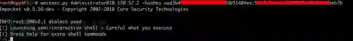 拿到哈希后,我使用impacket的wmiexec.py脚本,利用pass-the-hash技术最终获得了DA