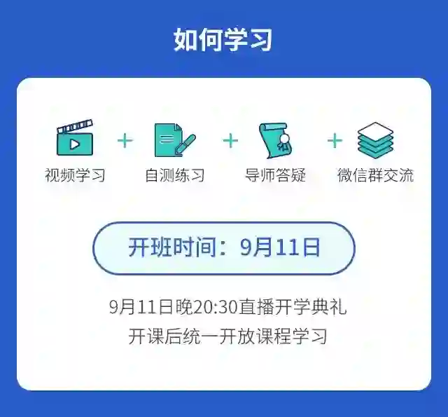 9月11日开课,本公众号粉丝报名可凭借优惠码享受4.5折优惠。详见文末。