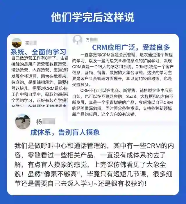 加班主任小艾(微信id:qdxy666)备注“CRM课表”咨询