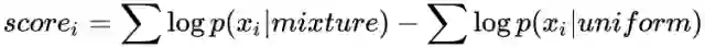 其中 mixture 是 gaussian mixture,可以通过 EM 算法得到。也就是,如果簇的形状越接近高斯分布(也就是越集中),得分越高;反之越分散越接近均匀分布,得分越低: